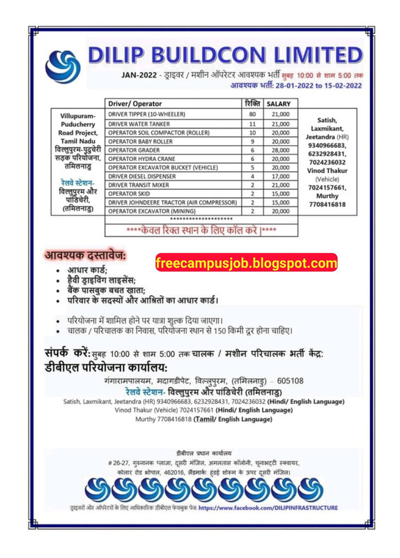Urgent Vacancy :- 28/01/2022 to 15/02/2022