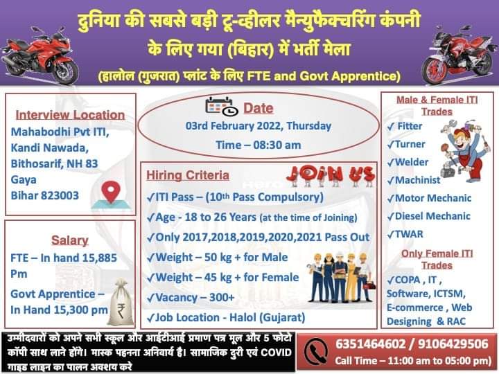 Venue :- Mahabodhi Pvt ITI , Kandi Nawada , Bithosarif , NH 83 Gaya Bihar 823003