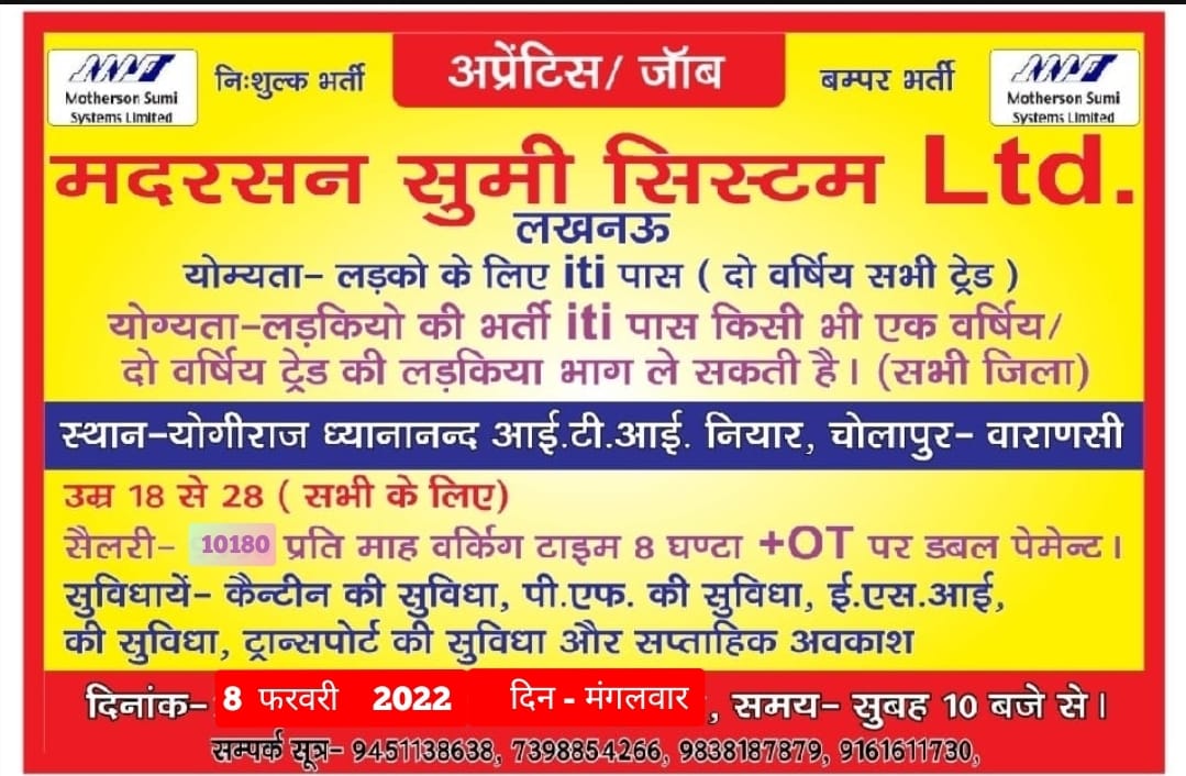 Venue :- Yogiraj Dhyananand I.T.I. Niyar, Cholapur - Varanasi