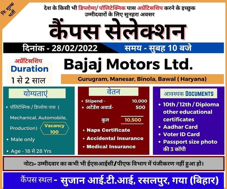 | Bajaj Motors Limited Recruitment 2022 |