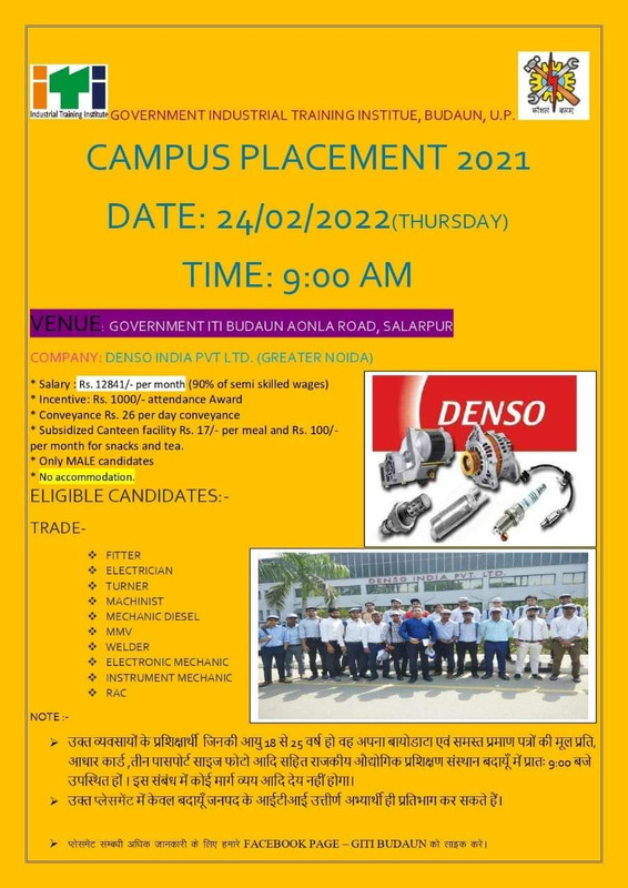 Venue:- GOVERNMENT ITI BUDAUN AONLA ROAD, SALARPUR .