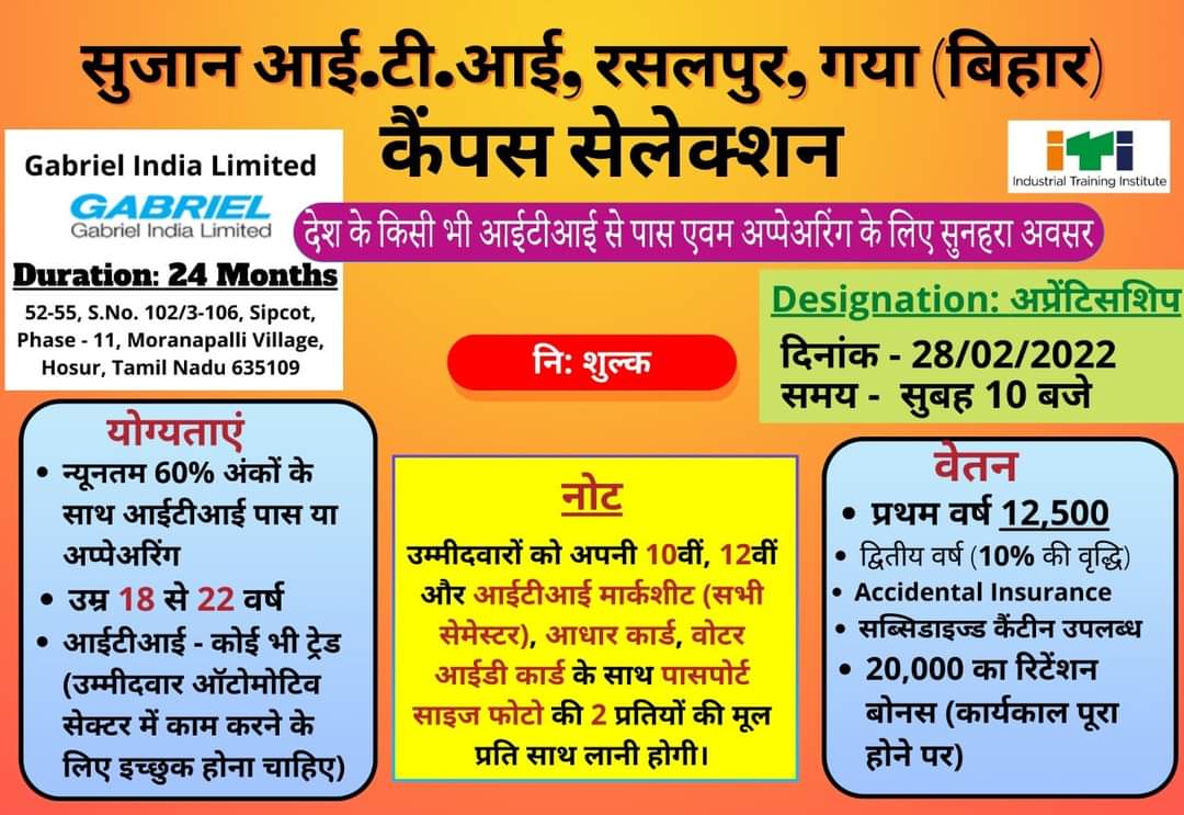 Venue :- Sujan ITI, Rasalpur, Gaya (Bihar)