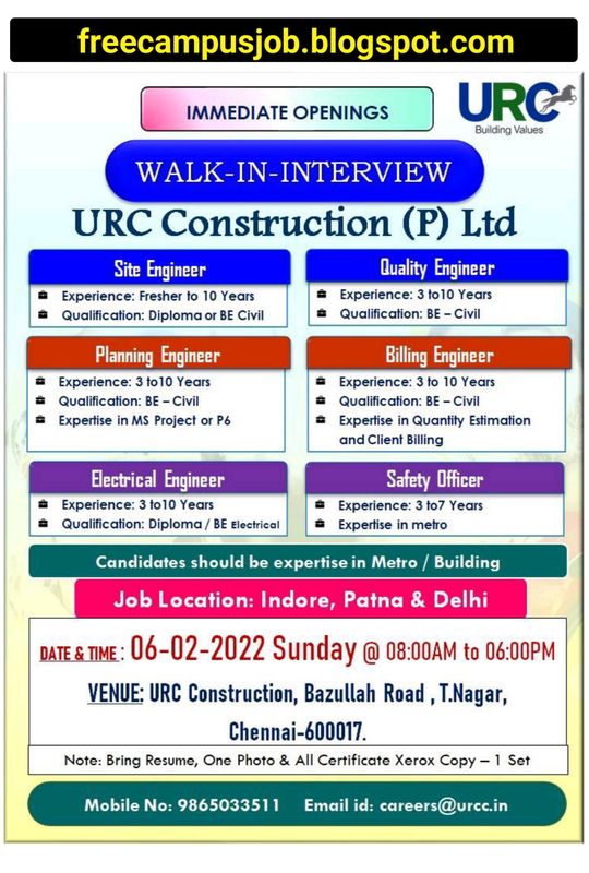| Urc Construction Pvt Ltd Recruitment 2022 |