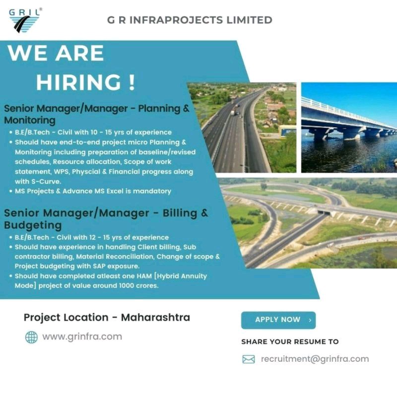 Interested Candidates Share Your Resume To :- recruitment@grinfra.com