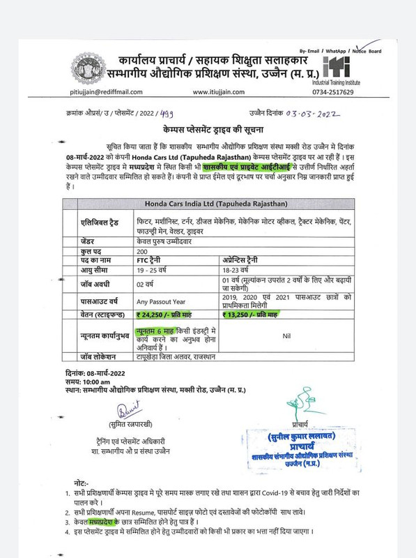 Venue :- Divisional Industrial Training Institute, Maksi Road, Ujjain (M.P