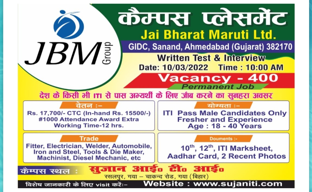 Venue :- Sujan I.T.I. Rasalpur, Gaya Chakand Road, Gaya (Bihar)