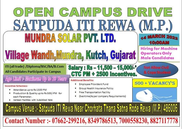 Qualification:- ITI (All Trades) / Diploma / BSC / BA / B.com All Candidates Participate in Campus