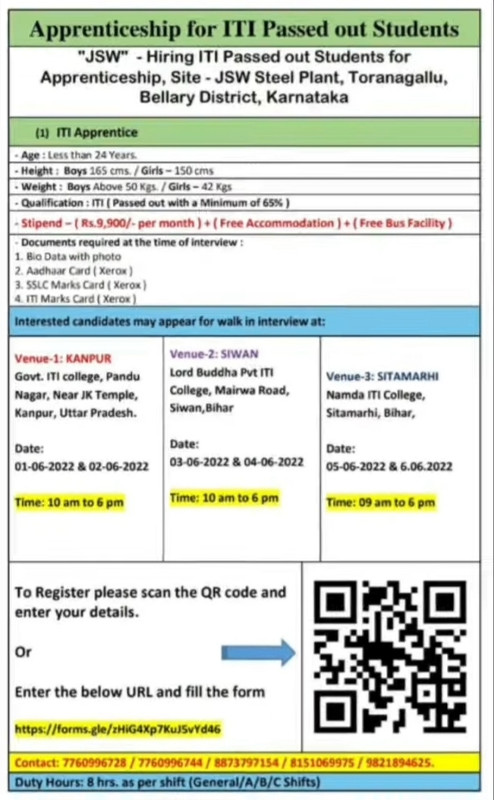 Qualification :- ITI Pass Out with a minimum 65% Marks