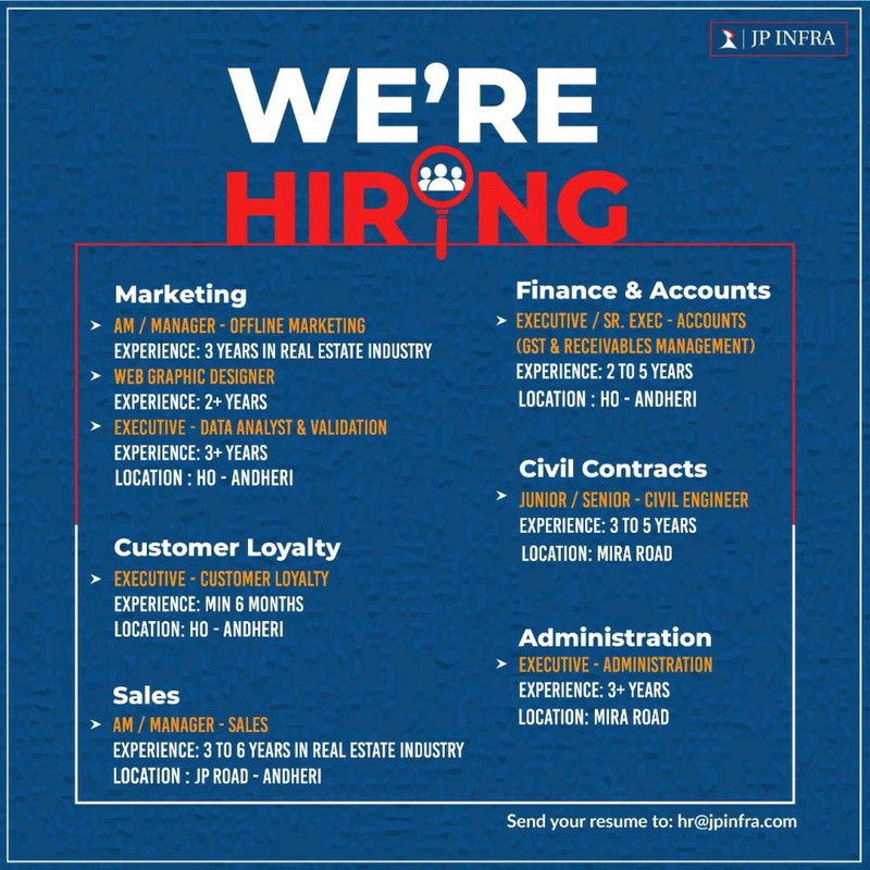 Interested Candidates Send Your update Resume On :hr@jpinfra.com