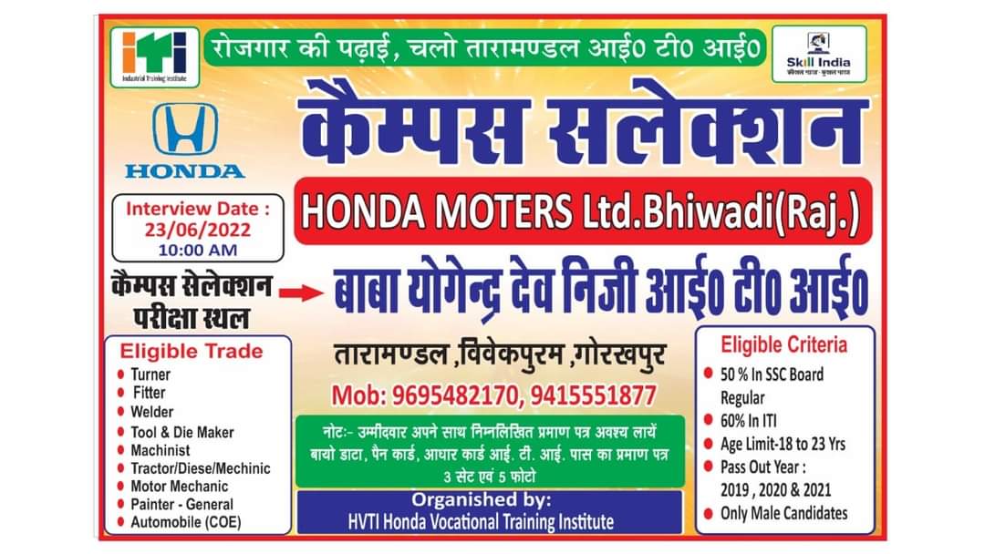 - Venue :- Baba Yogendra Dev Private ITI , Taramandal , Vivekpuram , Gorakhpur (U.P)