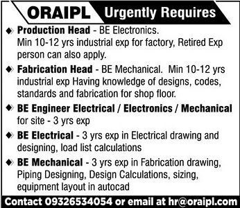 - Experience :- 10 to 12 years Industrial experience having knowledge of designs , Codes , standers and Fabrication for shop floor.