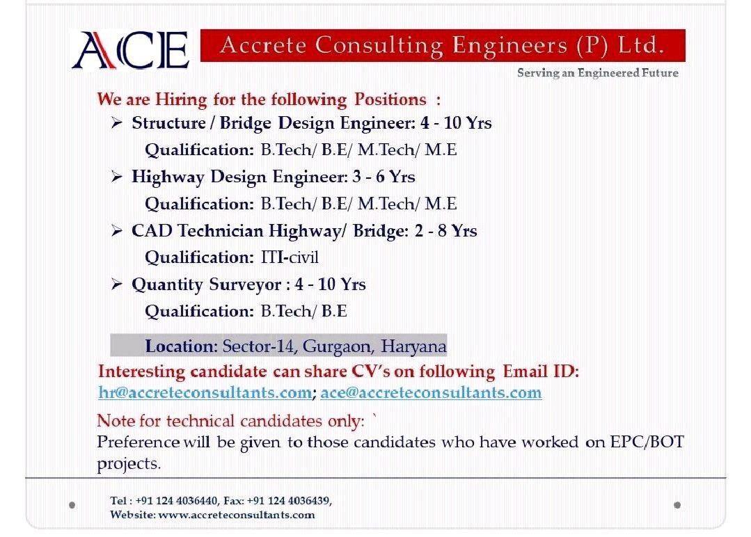 Accrete Consulting Engineers Pvt Ltd Recruitment 2022 | Design Engineer | Highway Design Engineer | Quantity Surveyor