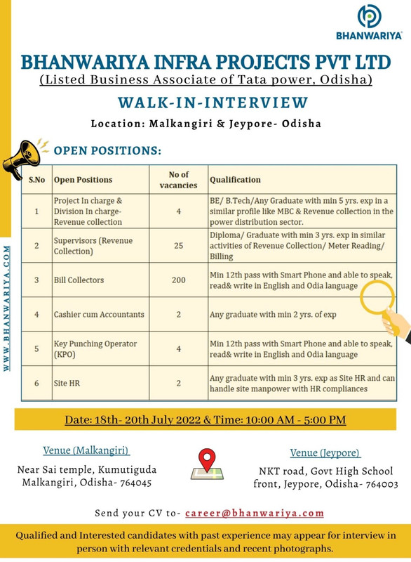 | Bhanwariya Infra Projects Pvt Ltd Recruitment 2022 |