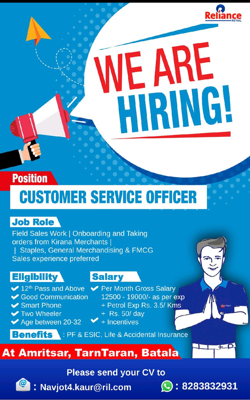 Interested Candidates Send Your CV on : Navjot4.kaur@ril.com