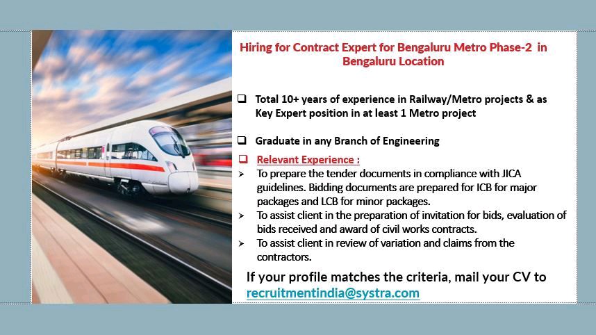 Hiring for Contract Expert for Bengaluru Metro Phase - 2 in Bengaluru Location